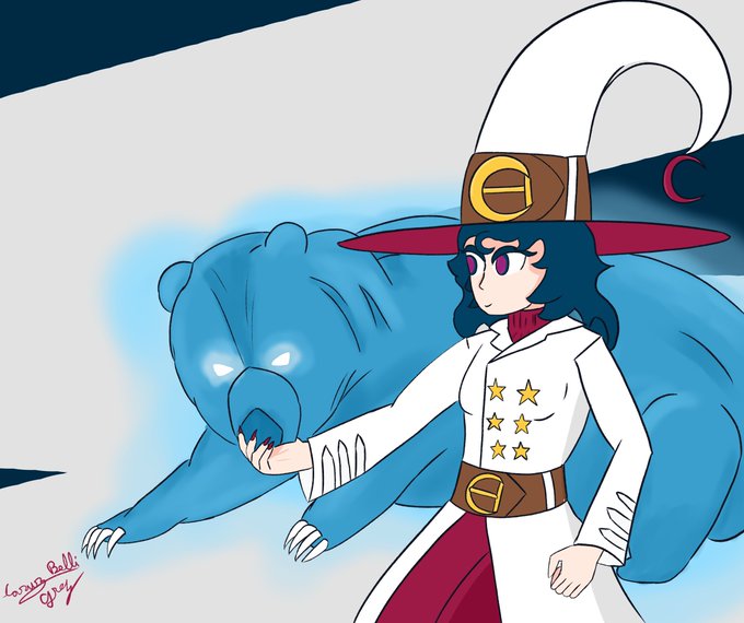 @Moleh_sunflower She's connected to the Ursa major constellation and once in the snowy mountains alone at night she stumbled into the star bear (based on a Eurasian brown bear) and now the bear will mysteriously appear occasionally and follow her.