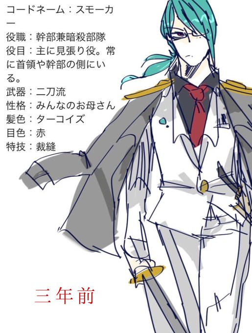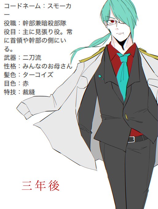 #マフィア達の選択 Holz所属のスモーカーさんです。 くろまるさん宅のウィルちゃんと恋人関係で、ウィルちゃんが元の世界へ「帰る」か「帰らないか」で変わりますが 一応今の所は元の世界へ「帰らない」です。