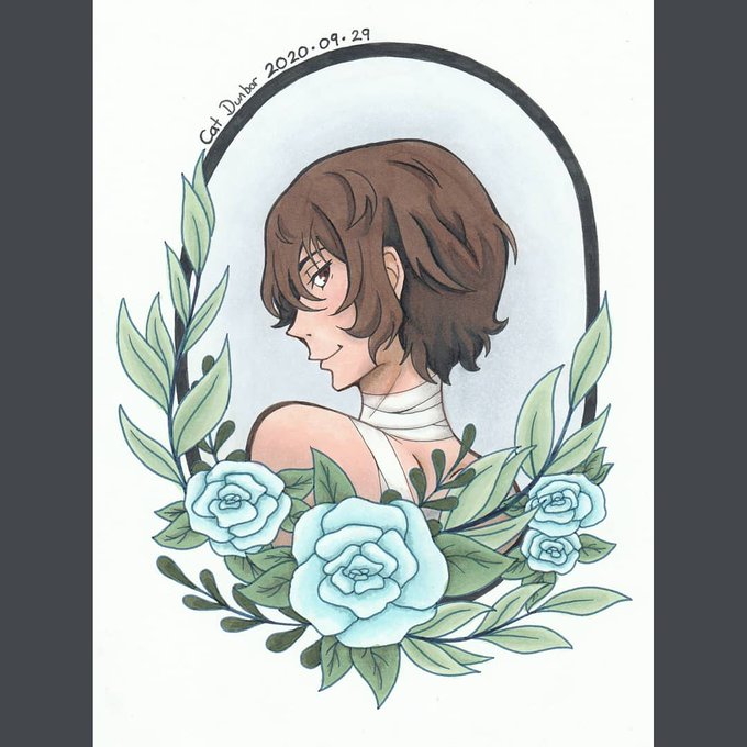 I drew some #BungouStrayDogs fanart. 😘 First, best boy #ChuyaNakahara with a warm #floral theme. Then a matchy cool tone floral theme for his least favorite person, #OsamuDazai.