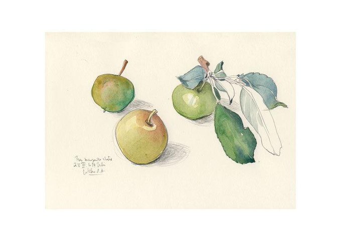 Apples #5, PRINT of watercolor and pencil drawing, three green apples. Sizes a5, a4, a3. Botanical art by Catalina …