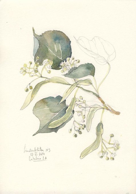 Linden blossom #4 drawing ORIGINAL watercolor and pencil art of Tilia, green Lime tree, botanical art by Catalina S…