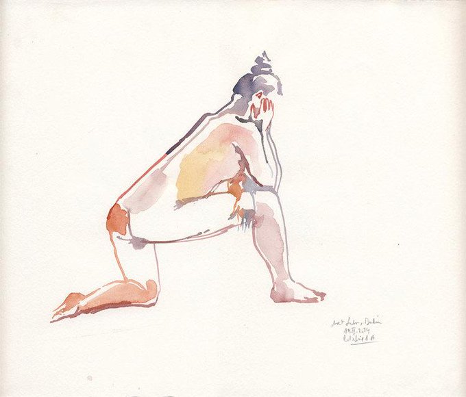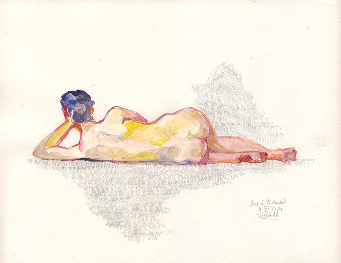 Lying woman, Nude painting. Original watercolor and gouache life art. Portrait of short poses of a woman by Catalin…