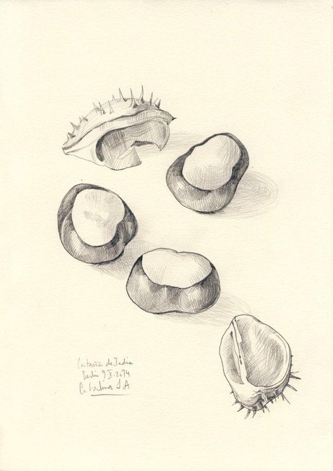 Conkers #3 pencil drawing PRINT of a chestnuts still life. Shabby autumn decoration, Botanical art by Catalina. by …