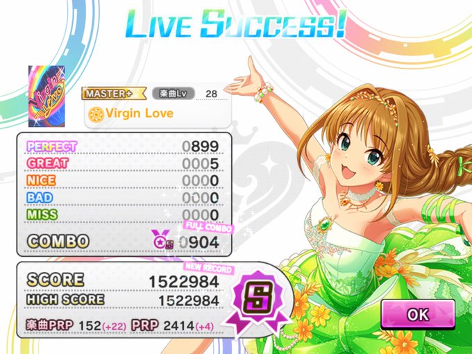 tulipのSPver久々にFC取れた!w けど前2曲がtwilight skyと薄荷だからスコア伸びなかった😭