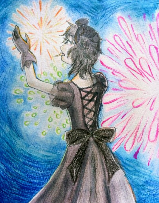 残暑見舞い申し上げます。夏休み終わっちゃいますね。 彼女久々に描いたかも。夏の空の花。