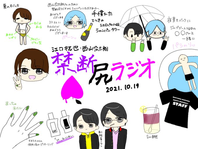 今までのイラストまとめー! #西山宏太朗 #いいおしりの日 #いい推しの日 #西山宏太朗写真展 #N山展 #禁断尻ラジオ #禁尻 #江口拓也