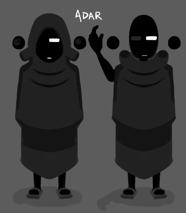 @ChrisRojo10 That would be Adar! He's an outcast because he was born without horns. He lives a very solitary life, unable to really fit in anywhere. He covers his hornless head with his cloak to avert prying eyes.
