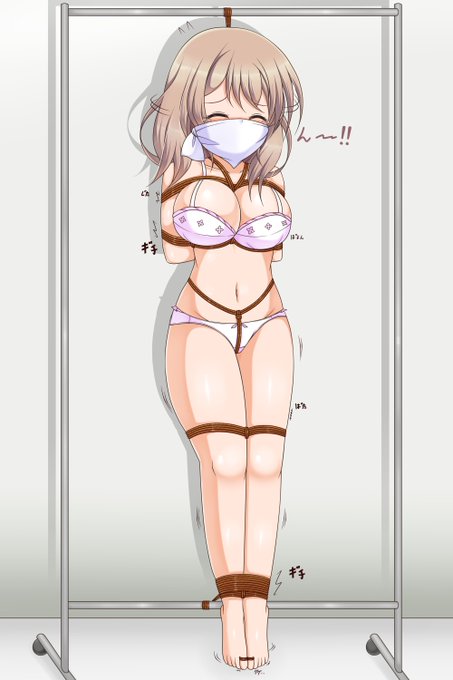 ハンガーラックに括り付けられた片瀬さん #うちの会社の小さい先輩の話 #片瀬詩織里 #猿轡 #緊縛 #下着 https://t.co/uGWuuWjhBg