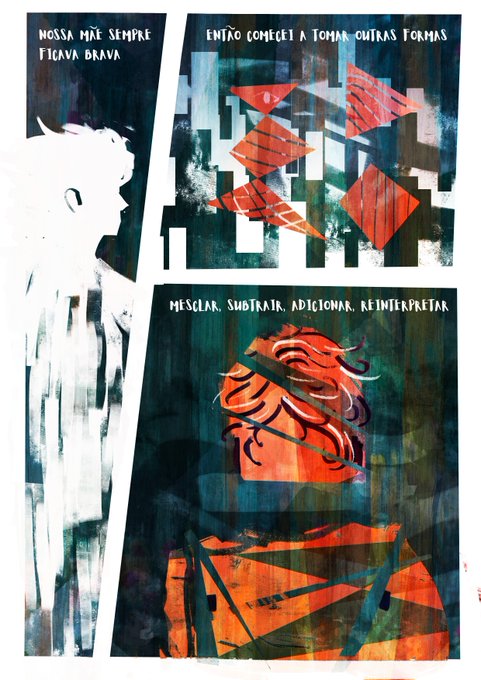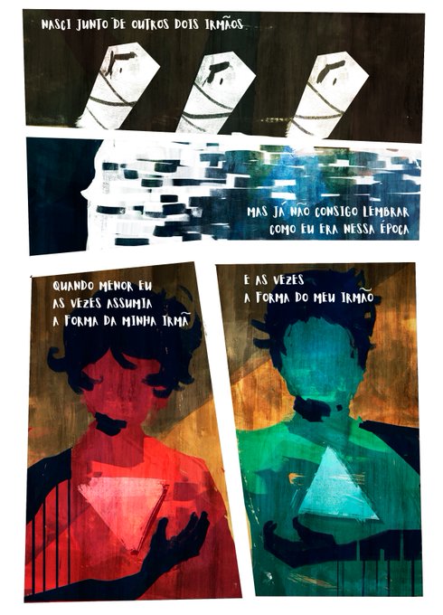 Algumas páginas (ainda não totalmente terminadas) da comic que estou fazendo que aborda a questão de gênero através de um monólogo-conto de um metamorfo sem forma fixa. Quase terminando tudo para ano que vem já pensar em publicar