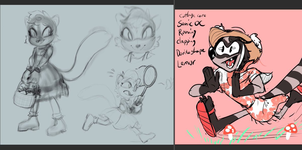 THANK YOU @uwakcrow FOR JOINING WITH ART THIS TIME, COME CHECK OUT THE STREAM AND WIN THIS cottagecore sonic lemur oc who is clapping while running and dorito shaped