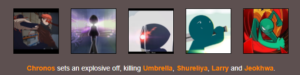 1일차(낮) 크로노스가 폭발물을 이용해 엄브렐라,슈렐리야,래리,적화를 죽였습니다.