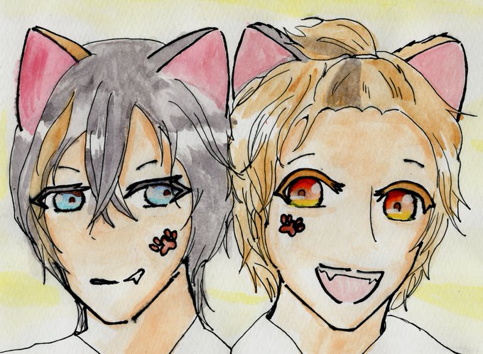 獣耳を描いてみたくなり、気の向くままにラフを作っていたら犬の双子にたどり着きました。双子ならではの共通点や特徴があるので、よかったら探してみてください!