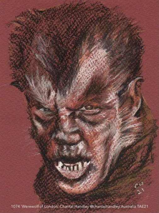 Hey #Horrorfam! The #TwitterArtExhibit is LIVE!! My postcard size artwork of Henry Hull. Werewolf of London is available to buy for £30 along with other beautiful art!! Fundraising for @L_I_N_C https://t.co/k4lDxAdivq