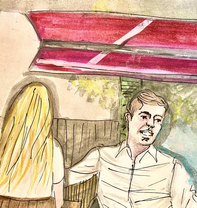 Messy sketch of cool coupe at bus stop