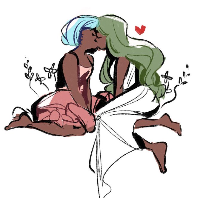 @elkwoods plant elemental oc Poppy and @spacebaths' oc Cici who loves gardening 🌿❤️they could probably live in a beautiful cottage together don't you think?