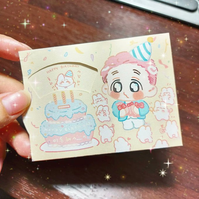 這陣子操勞得沒能好好準備 思考做了轉轉小卡 第一次做也研究很久 可能還是沒有很好 🤣 一起祝寶貝生日快樂💙💙💙💙💙 #엘프의_하나뿐인_바다_이동해 #HappyDongHaeDay