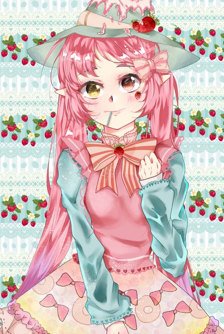 桃谷渋と言います、甘い甘いのパティシエです、飴やいちごなんか一番好き、それにふわふわの洋服が大好きです。😄 この絵は同人創作です