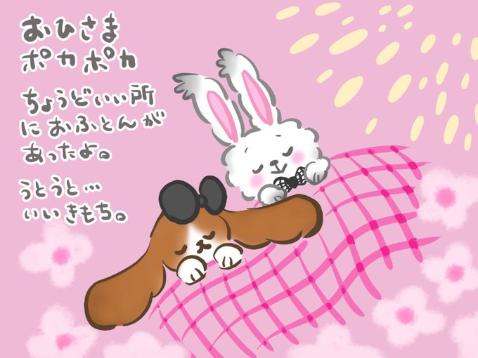 今日はお外へお散歩してきたよ! こんなことがあったよ🌸 #アンゴラウサギ #垂れ耳うさぎ #おやすみうさぎ #purple #pink #ピンク #おやすみ #ゆるキャラ #コミック #ゆるっと #イラスト