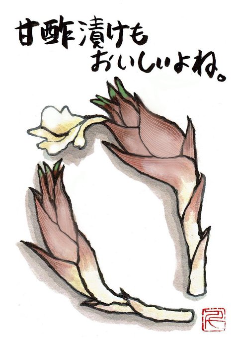 #絵手紙 #ハガキ絵 いつも私の料理に辛口コメントばかりの夫。 今夜は、これを使って彼の好きなキンピラごぼうをとびっきり辛く作ります。