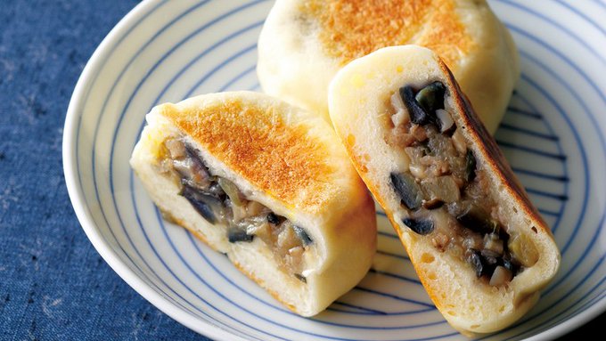 一生懸命おやきを食べてる