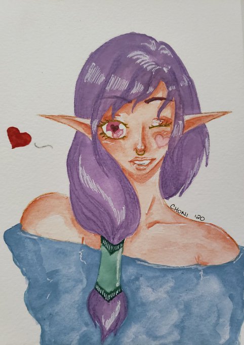 #art #characterart #watercolor #elf #hearteyes #purplehair