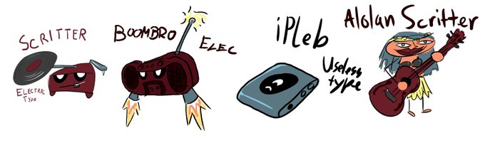 Another successful #Drawcast! This time it was a Fakémon comic jam. Each of us made a base 'mon and passed it on for the next to draw its evolution!