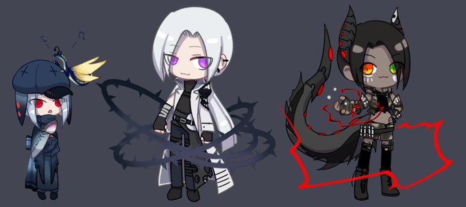 My OCs, Snow, Echo, and Kuro.
