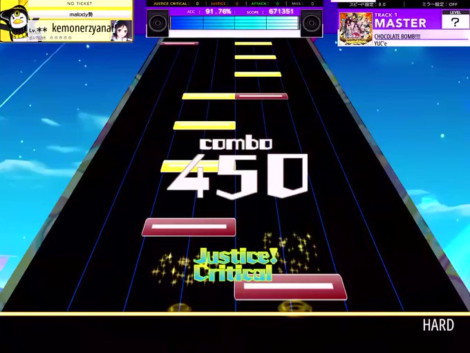 チョコボム本家リスペクトですこだけどMalodyのスライド判定たまにわかんなくなる