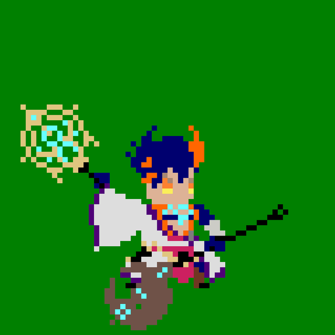 ハヤテとクオンとスズカの新しいドット絵٩( 'ω' )و クオンはバリバリ戦うキャラじゃないのでこれだけO(:3 )~ ハヤテは見にくいけど小っちゃい手裏剣持ってます スズカはテクテク歩く感じじゃなくてシュッと踏み込む感じ