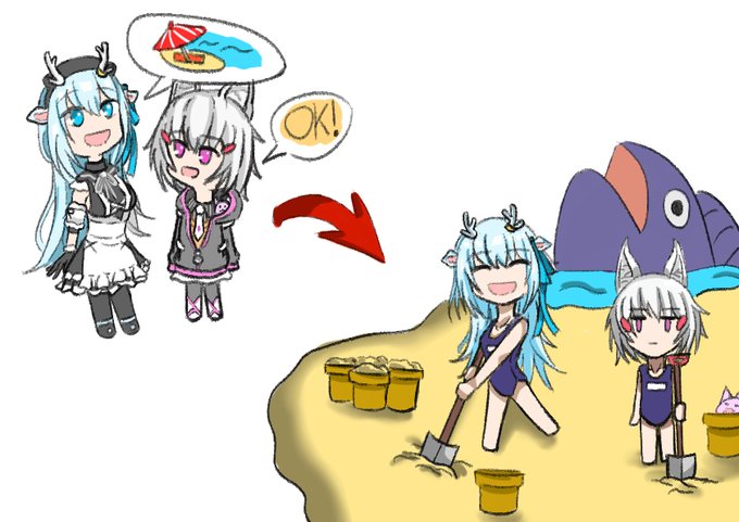 Hakushika-style beach date (with Tenma) #描く描く鹿々 #IoriSSART #お酒絵 #Artcoholic