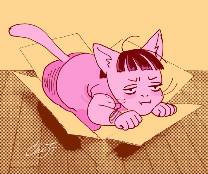 段ボール箱と猫、常秀。