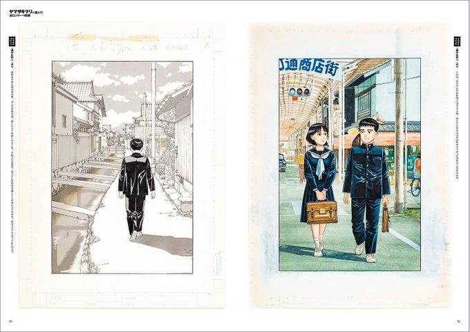 Magazines where he has never published and classic manga from other authors. Plus, what is the boy holding on his back?