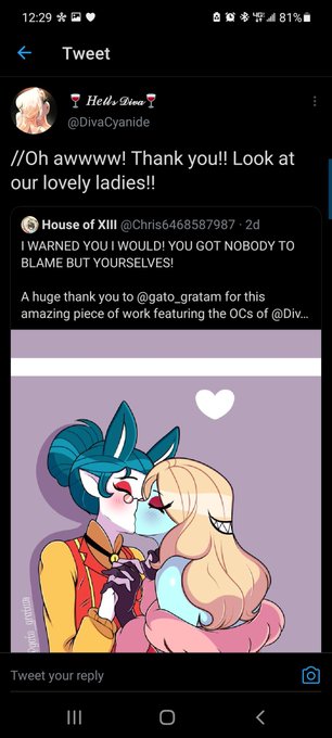 Today's #ThrowbackThursday was a commission I bought in response to the tension between @/DivaCyanide and @/SaboteurVixen's OCs