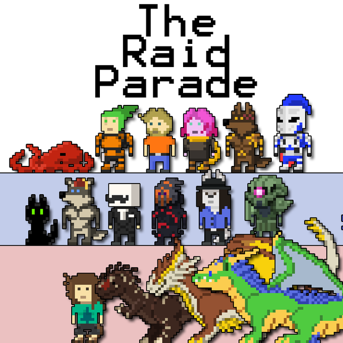 Made a group pixel photo for my friends/family that is Raid Parade. With room for the people who aren't around as much as soon as they get me their refs. I love this goofy bunch of beans. :D