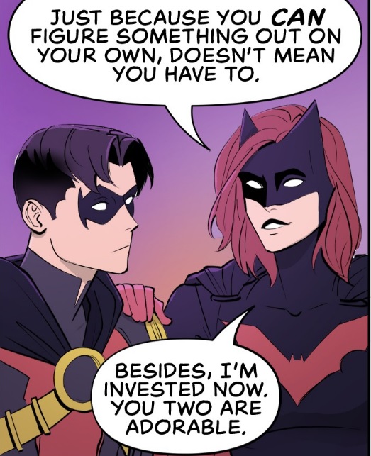 I came to this series to see all of my favourite Bat-family characters interacting with one another. I stay for these heart-warming moments where this found family just supports one another. Also the jokes about Bruce and Dick being old. #WayneFamilyAdventures