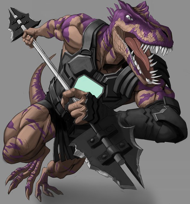 Another oc that I made named Siege. Part of a humanoid dinosaur warrior team lead by https://t.co/Pzqbq7v1FX . Based on an ankylosaur. #OC #characterdesign #characterart #dnd #dndartist