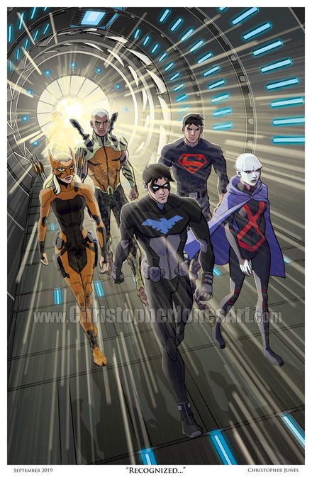 The 2nd of my new 11x17 #YoungJusticeOutsiders prints is here! "Recognized" features the original line-up of the #YoungJustice team as they appear in Season 3! I'll have it at my #NYCC Artist Alley table (B-10) for $20, and in my Etsy store & at other con appearances afterwards.