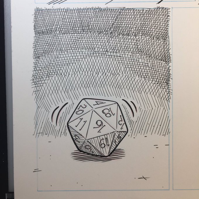 #inktober Day 2! #venturecats page 2, panel 1 inked! The first appearance of Guppy (seated) and uncle Jojo (standing) as Guppy rolls his character for the game they’re about to play😸 #inktober2019 #instaartist #catsagram #tabletoprpg #indiecomic