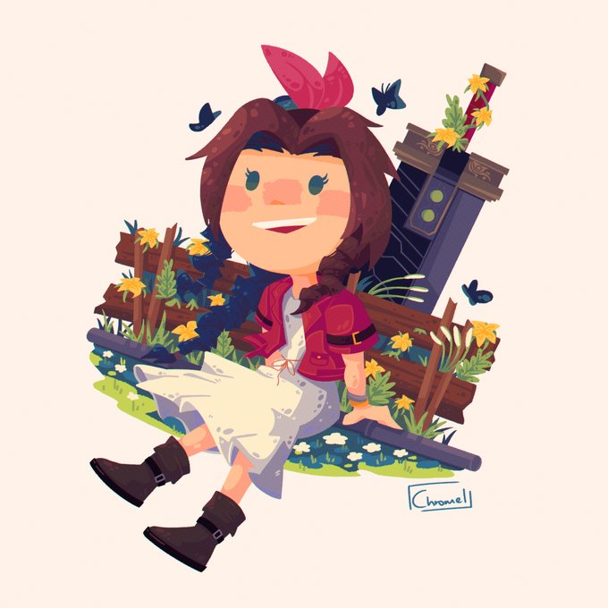 I keep forgetting to post this ;_; Here's my charm design for the @Aerith_Zine! 🌷🥀🌼Featuring Zack's buster sword 🗡️#FF7R #FF7
