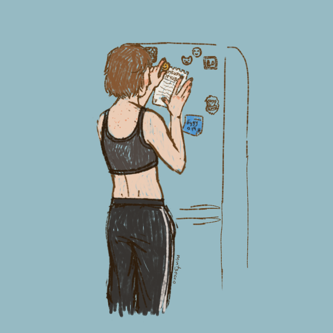 Вона волонтерка, вони з Ненсі живуть разом і обидві мають звичку вішати на холодильник стікери-нагадування про всяке різне UwU