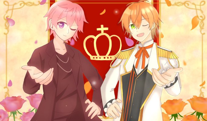 💗🧡「おいでっ?」 ユウヅキちゃんと合作させていただきました! 背景もユウヅキちゃんが描いてくれてとっても素敵なイラストになりました…!お互いアルバムの衣装です✨ #ジェルぎゃらりー #さとみギャラリー #ジェルくん #さとみくん