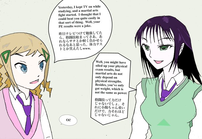 Sachi and Koharu discuss martial arts.