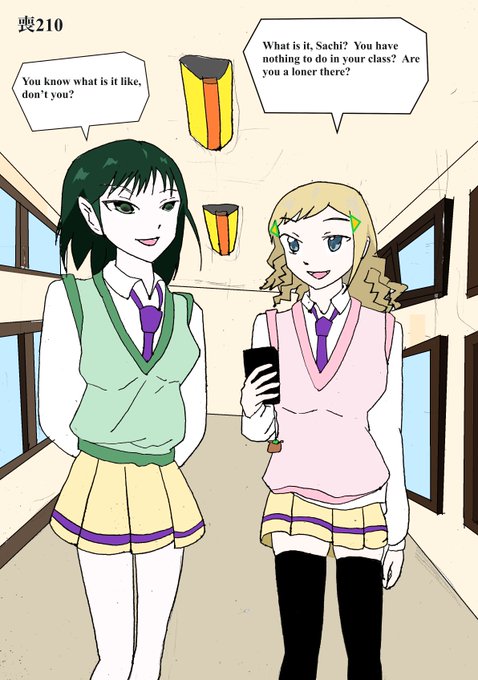 喪210. 例によって智子妄想中の画像。話初めの陽菜に対する偏見もそうだけど、智子の場合現実にどうかより彼女がどう思い込みたいかが優先されるのだよね。今までゆりが店員、先生などに普通に頼んでたのを忘れているというか。😌