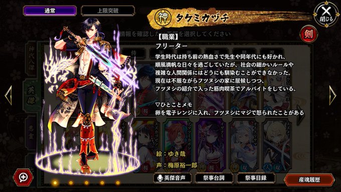 #推しの名前を呟いて5RTされたらその愛は本物 タケミカヅチちゃん 4枚目は最後に全部隊解散させたときの 第一部隊大将だけは解放できないから、最後はこの子にいてほしかった