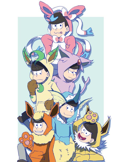 友達がおそ松さん大好きなので、誕イラで描いたー ブイズ×おそ松さん 6人だから色々いない… ブラッキー、グレーシア、イーブイ… 今度Aqoursでやってみようかな #おそ松さん #イラスト #ポケモン #ブイズ