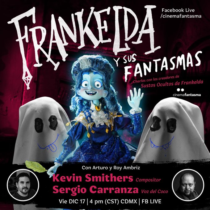 ¿Listos para la siguiente sesión de #Frankelda y sus fantasmas? Este viernes contaremos con Kevin Smithers, compositor musical de la serie, y con Sergio Carranza, el actor que le da voz al Coco. Al final de la sesión sortearemos más regalos :)
