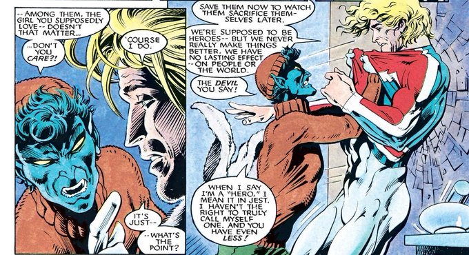 Claremont also, notably, builds a lot of NM stories around Illyana’s conflict with her demonic history, a history that was, of course, first seen in the pages of UXM (and the Magik miniseries). 5/9