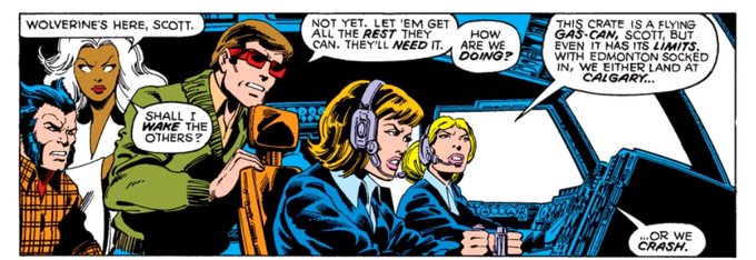 One of the most direct influences on C’s portrayal of women in UXM was his mother, who worked for the British Air Force (in WWII) and later became a pilot. The significance of this is pretty easy to map, given the number of literal women pilots in UXM and in C’s novels. #xmen 1/4