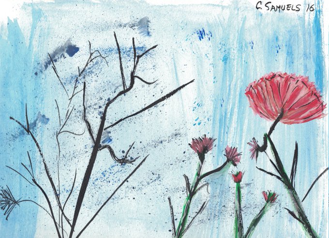 #Watercolor & #Ink--"#Sailboat and Red Sun"