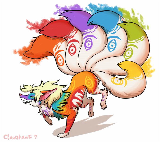 Drew this beautiful rainbow kitsune for @IFOHSTombo he's a gorgeous boyo! ❤️🧡💛💚💙💜